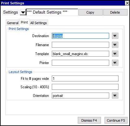 | 8 | Printer | If Destination is printer then output is sent to the printer specified here. If this field is empty then output will be sent to the Windows default printer. Press <F3> to select from a list of available printers. NOTE: To clear the Printer field Press <F3> to select from the list of printers, and click on <Cancel> | |