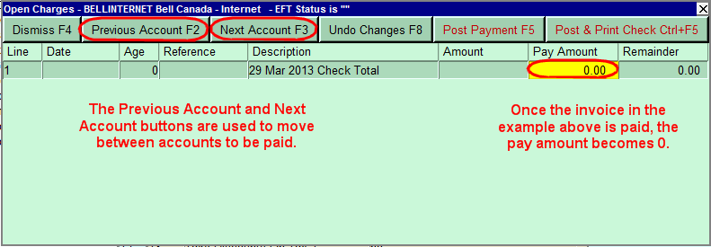 When you are done paying suppliers, click the <Dismiss> button to end the Pay Account command.