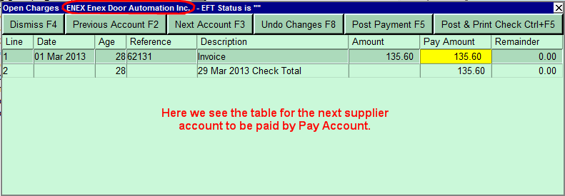 Pay Account checks the EFT Payment status of supplier accounts.