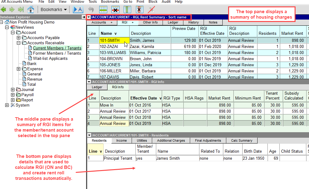 NewViews uses information entered on the RGI Info tab of member/tenant accounts to automatically create rent roll transactions in the Income Register (see Creating Rent Roll Transactions Automatically for details).