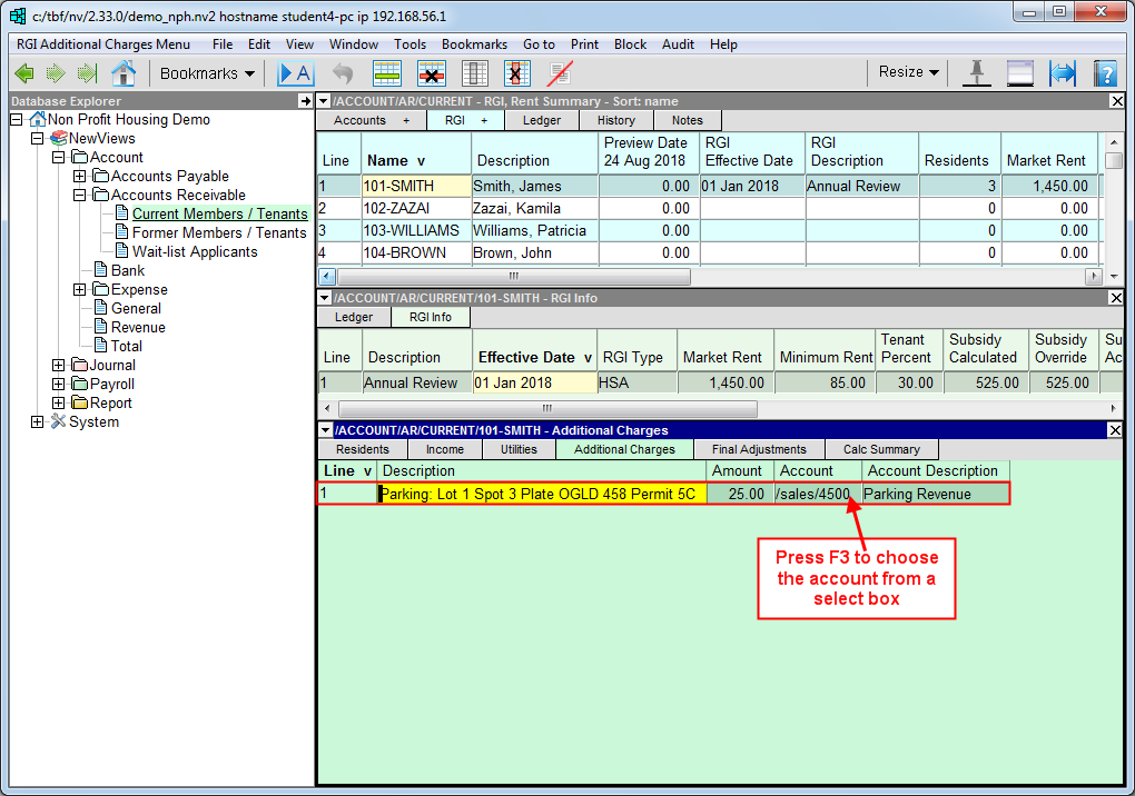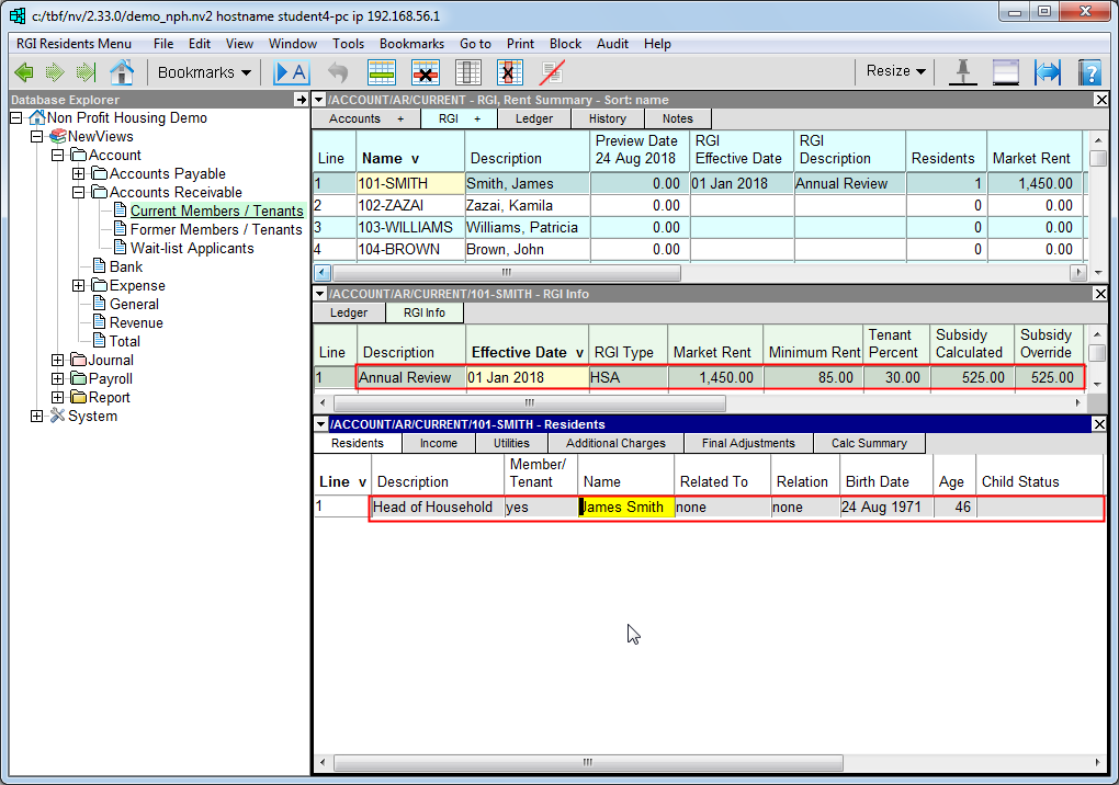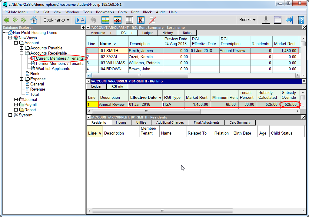 /ACCOUNT/AR/CURRENT - RGI, Rent Summary should be displayed in the title bar across the top of the window. If you are not on the Rent Summary view, click the RGI + tab below the title bar to select it.