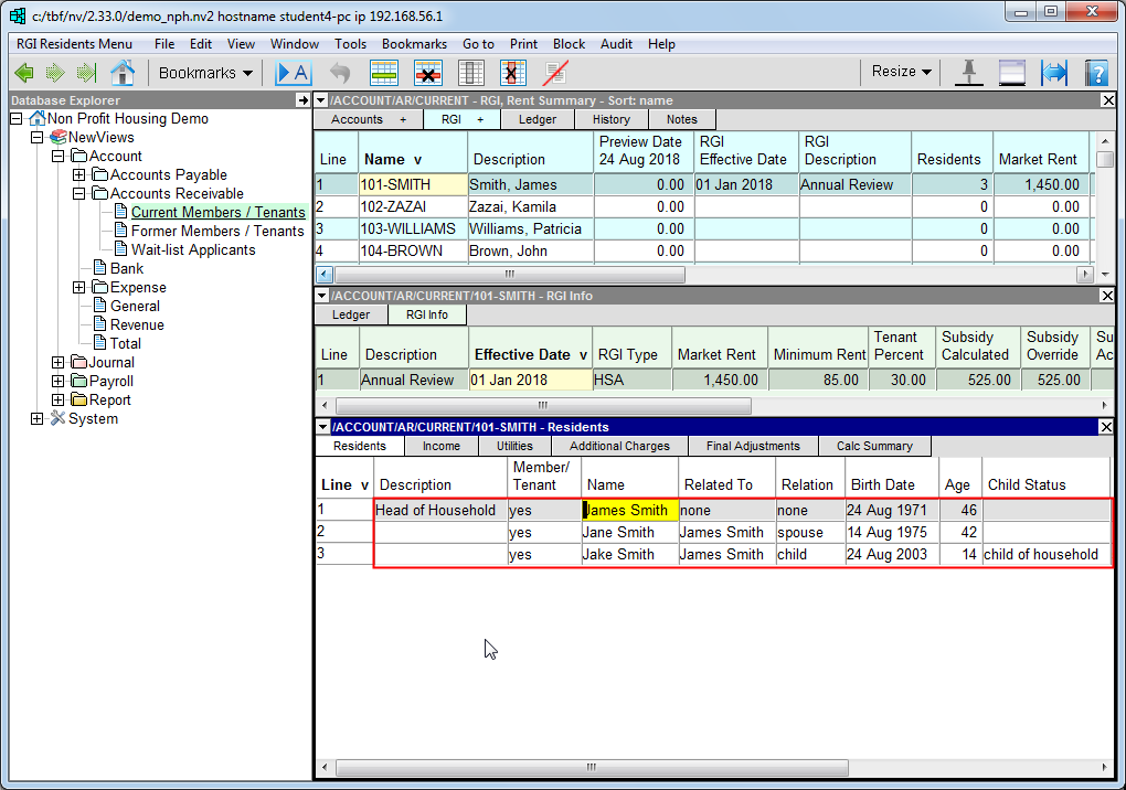 In the Database Explorer, activate (click on) Current Members/Tenants.