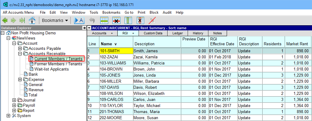 In the Database Explorer, activate (click on) Current Member/Tenants, or Former Member/Tenants if you are printing housing reports for members/tenants that have moved out.