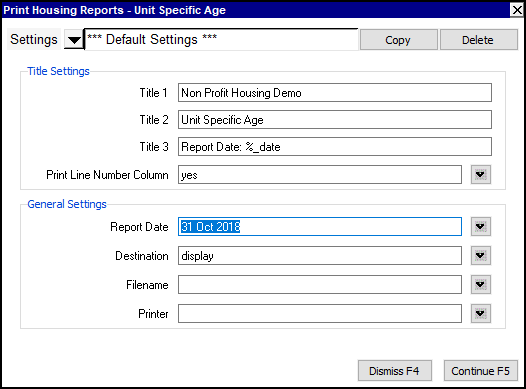 | 5 | Printer | If Destination is printer then output is sent to the printer specified here. If this field is empty then output will be sent to the Windows default printer. Press <F3> to select from a list of available printers. NOTE: To clear the Printer field Press <F3> to select from the list of printers, and click on <Cancel> | |