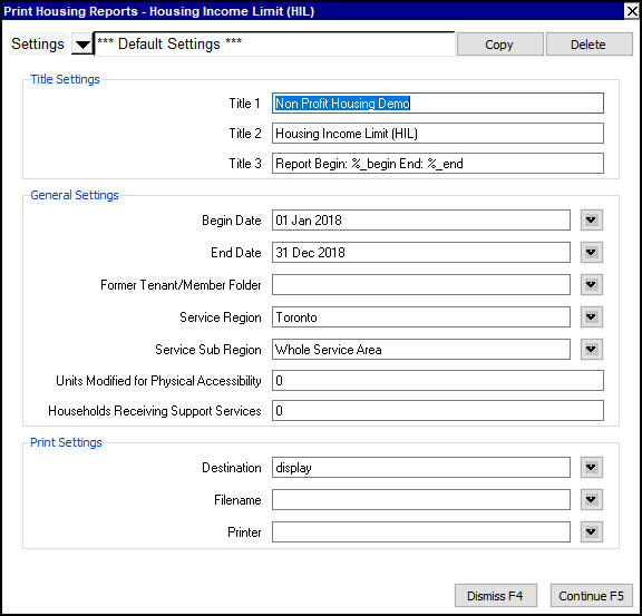 The prompt for all housing reports except Housing Income Limit has the following fields: