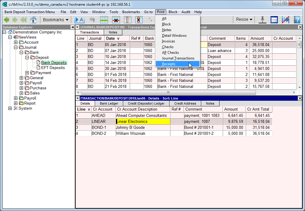 Navigate to one of the journals or ledgers identified above (i.e. bank deposit journal, bank ledger, general journal, general ledger or AR ledger).