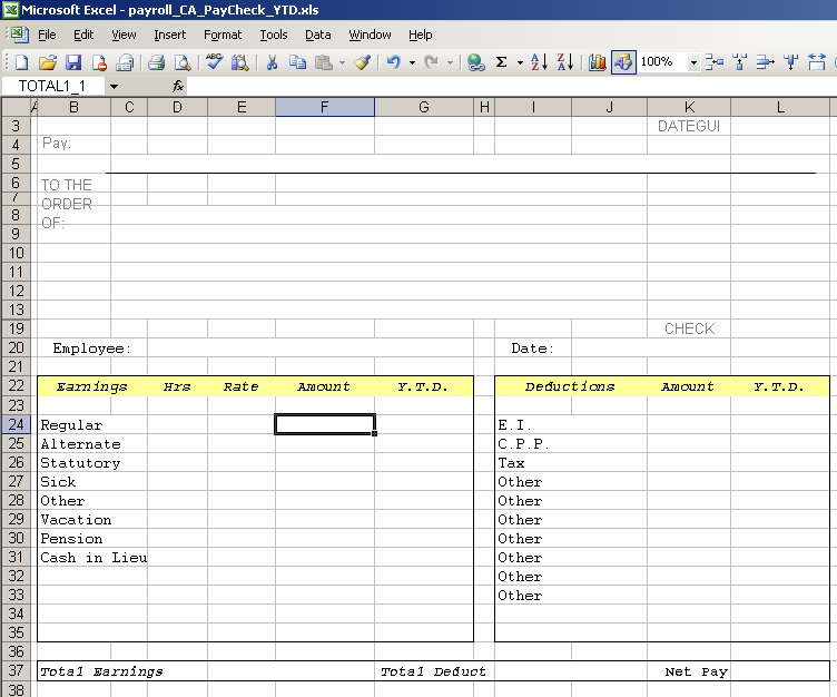 The following four printing templates are provided. All four templates have earnings from TOTAL1 to TOTAL10 mapped and deductions from TOTAL27 to TOTAL37 mapped. You simply need to change the earnings/deduction's description on the template.