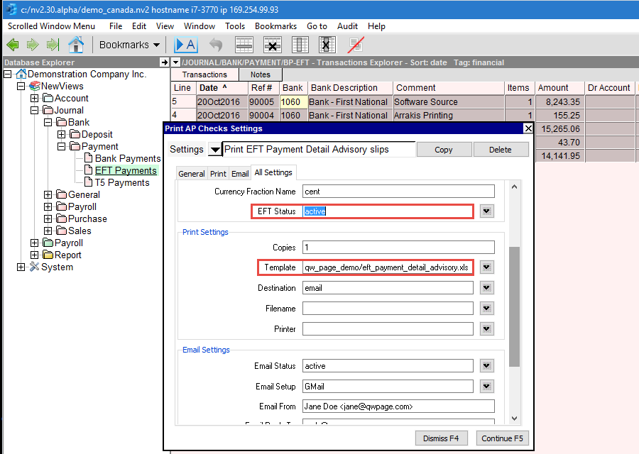 EFT Payments Detail Advisory may also be created as an email attachment and send directly from NewViews. When NewViews prints directly to PDF, you are no longer required to send your document to the printer, then to the scanner and then manually attaching the document to an email in a third party program like Microsoft Outlook. See email Print Settings for more.