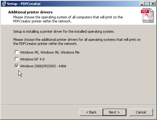 During setup PDFCreator asks for additional printer drivers