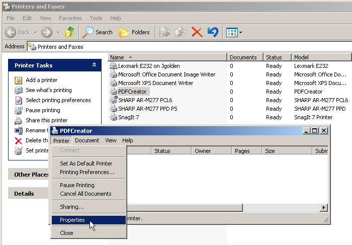PDFCreator is now ready to accept print documents from NewViews.