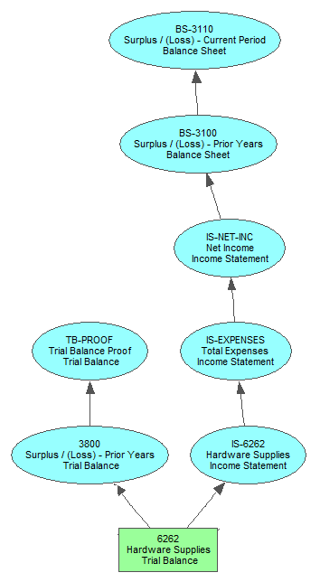 For instance, you use a Totalto field to link an expense account on the trial balance to a corresponding account on the income statement. In turn, the expense account on the income statement totals to the total expenses account, which totals to the net income account on that same report. The net income account then totals to the surplus/loss account on the balance sheet.