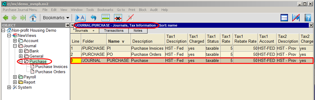 The Purchase Journal folder can be found by expanding the following folders: NewViews/Journal