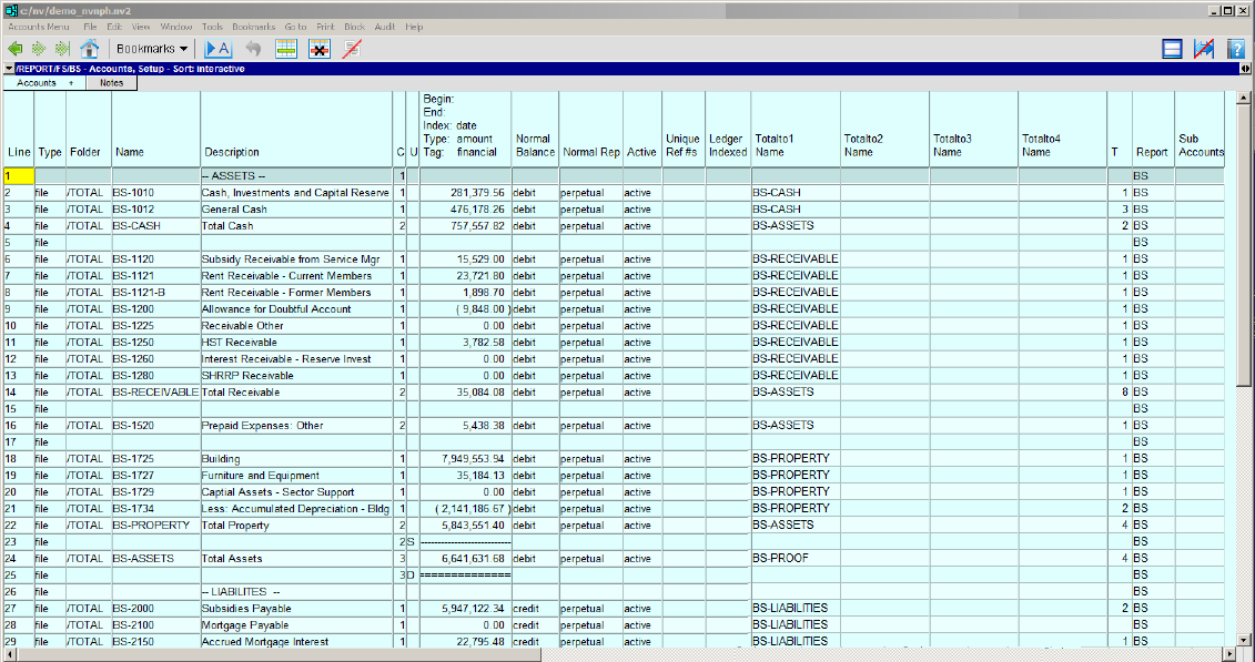 | Total | | Indicates whether the account is a posting or total account. For posting accounts, this column displays 0. For total accounts, this column displays the number of accounts that total to the account. |