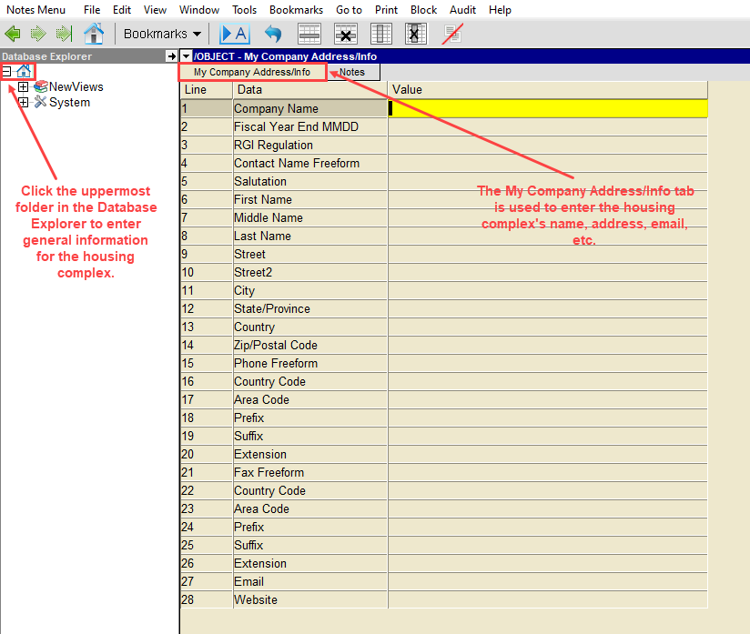The My Company Address/Info should be displayed in the window on the right. If not, click the My Company Address/Info tab at the top of that window.
