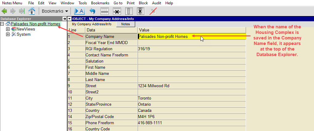As soon as you move off this field, the name of the uppermost folder in the Database Explorer on the left will change to reflect the name that has been entered.