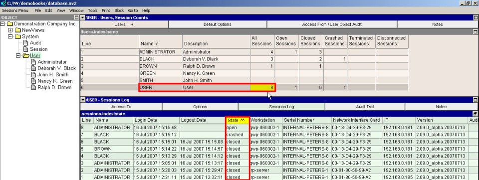 | disconnected | The server lost a connection to the workstation that had the session open. This can happen only when accessing a database through a server. The workstation may have crashed or there may have been a problem with the connection itself. In any case, the situation was detected by the server. The server properly closed the session and no data was lost. |
