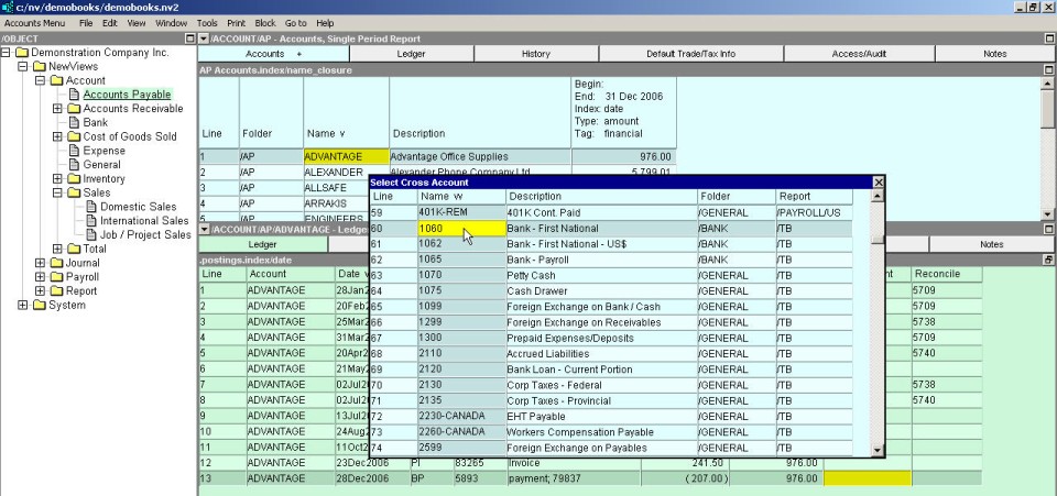 By enabling you to make choices from a list, select boxes (<F3>) eliminate the inconvenience of forgetting document names, and reduce typing and data entry errors. NV2 provides select boxes wherever it is appropriate.