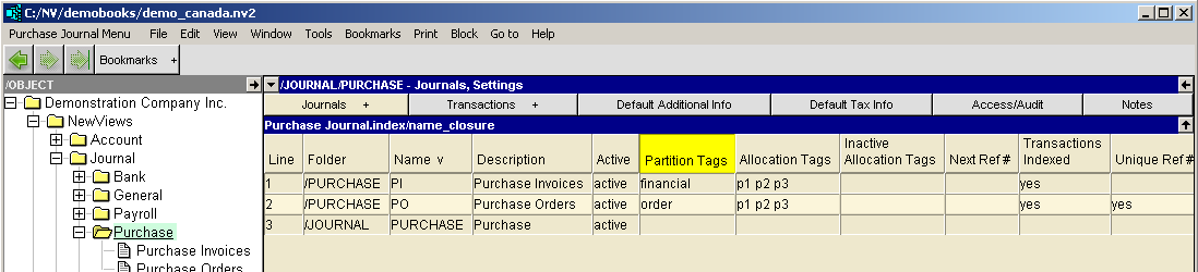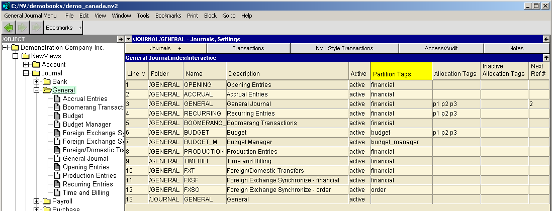 NewViews has three preset partition tags: financial, order and budget.