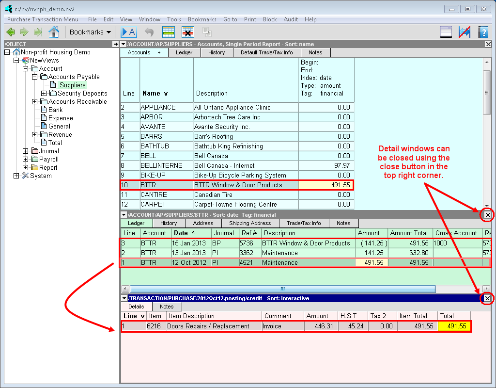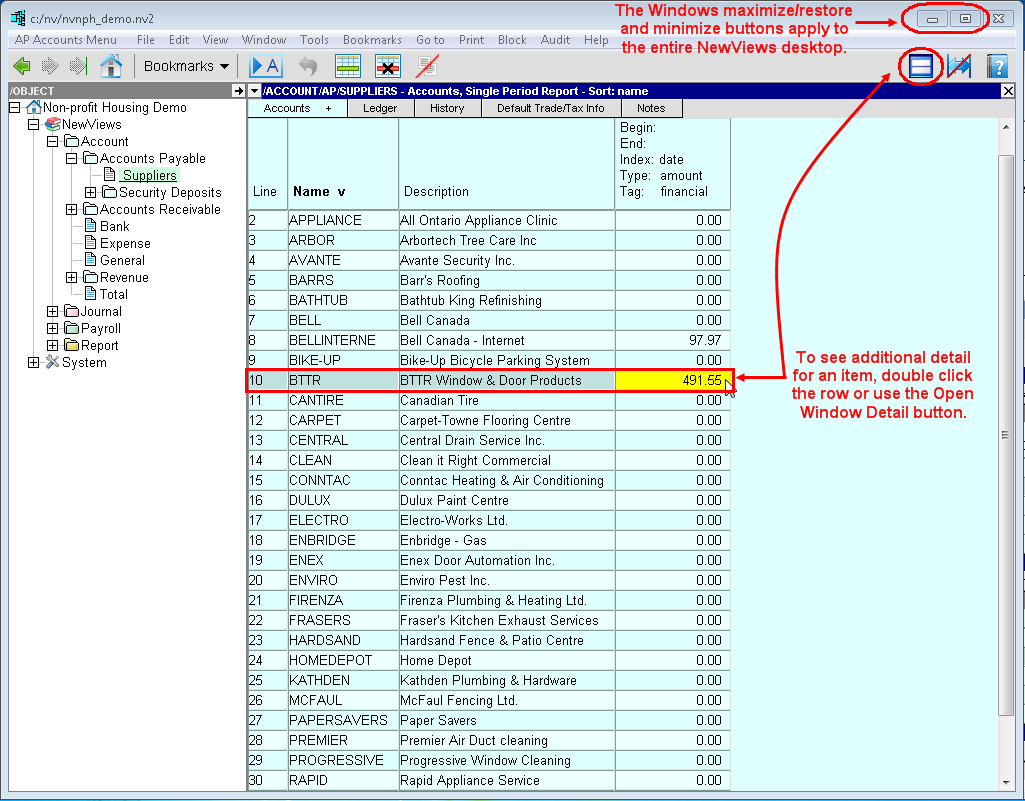 As an example, a common way to look at reports would be with all levels of detail on the screen, like the Accounts Payable sub-ledger shown below.
