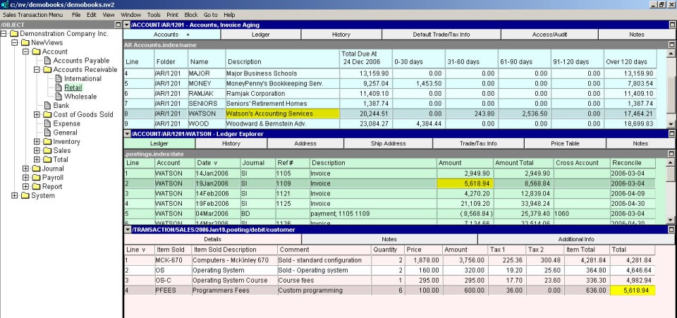 Click Accounts Receivable accounts (NewViews/Account/Accounts Receivable) in the NV2 Database Explorer.