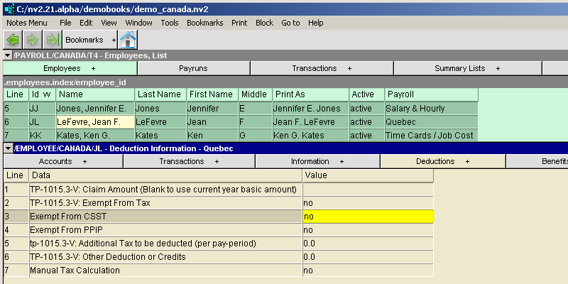 | This field (from the TP-1015.3-V form) specifies whether the employee is exempt from Quebec tax.