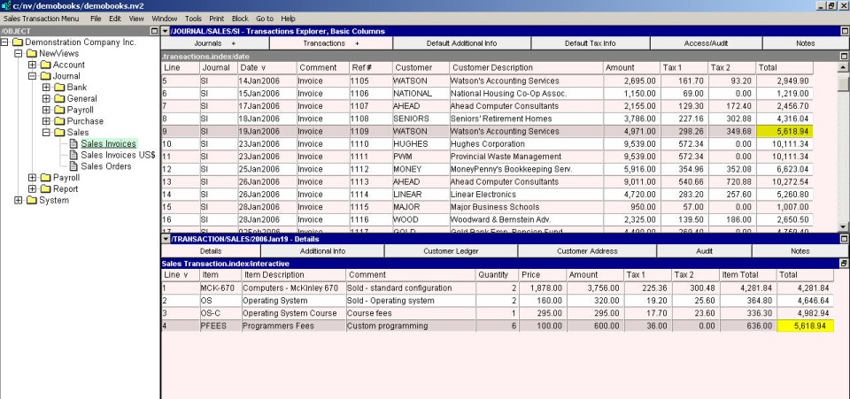 Click the Sales Invoices Journal (NewViews/Journal/Sales/Sales Invoices) in the NV2 Database Explorer.