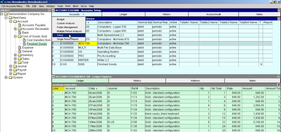 The new cost of goods sold account will automatically be saved when you move off the line. At this point, postings can be added to the account, and the total cost of goods sold account and all related accounts and reports will be updated immediately.