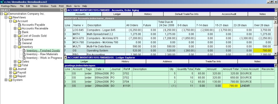 The inventory Order Aging window is used to display an aged analysis of your open inventory orders and backorders (purchases and sales), as of the current date. The Aging window is a split pane window that enables you to view open order amounts by aging period.