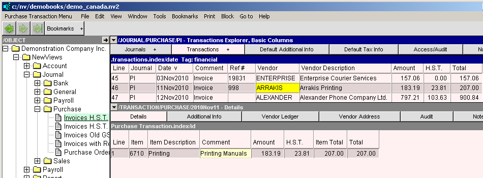 Click the Purchase Invoices Journal (NewViews/Journal/Purchase/Purchase Invoices) in the NV2 Database Explorer.