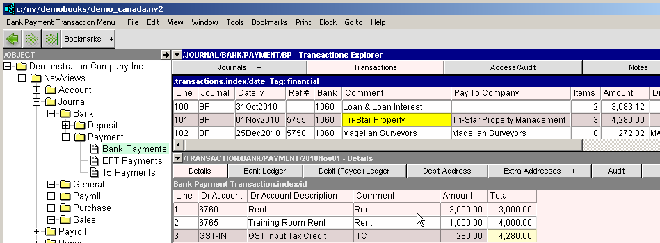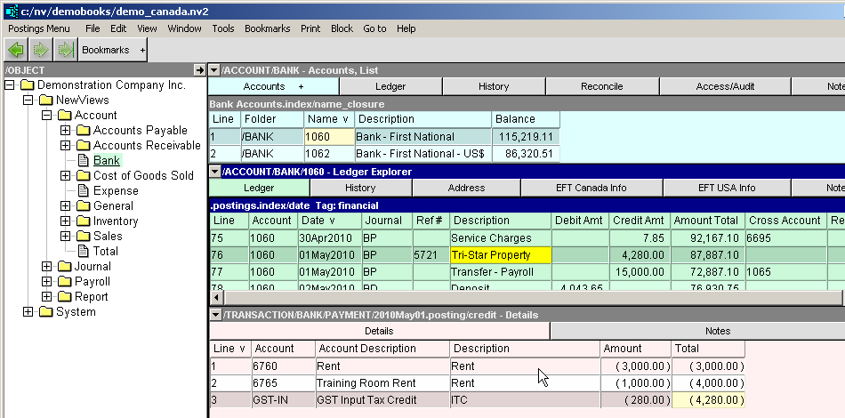 Click Bank Accounts (NewViews/Account/Bank) in the NV2 Database Explorer.