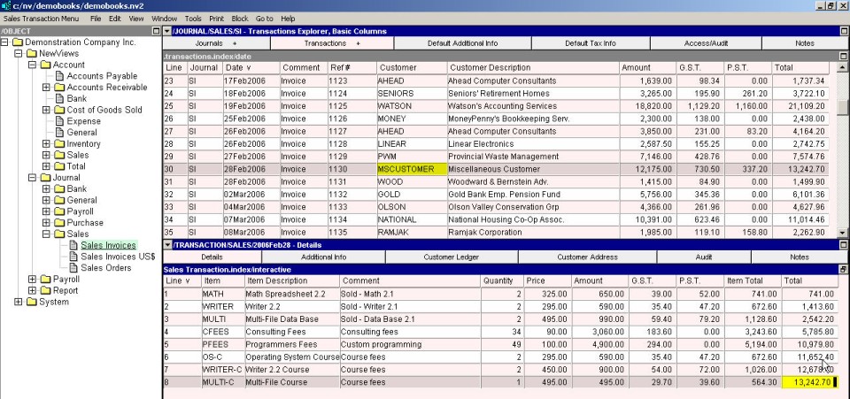 If the right window is not the Transactions Explorer window, click the window list button at the left of the title bar that reads /JOURNAL/SALES/SI and choose Transactions Explorer).