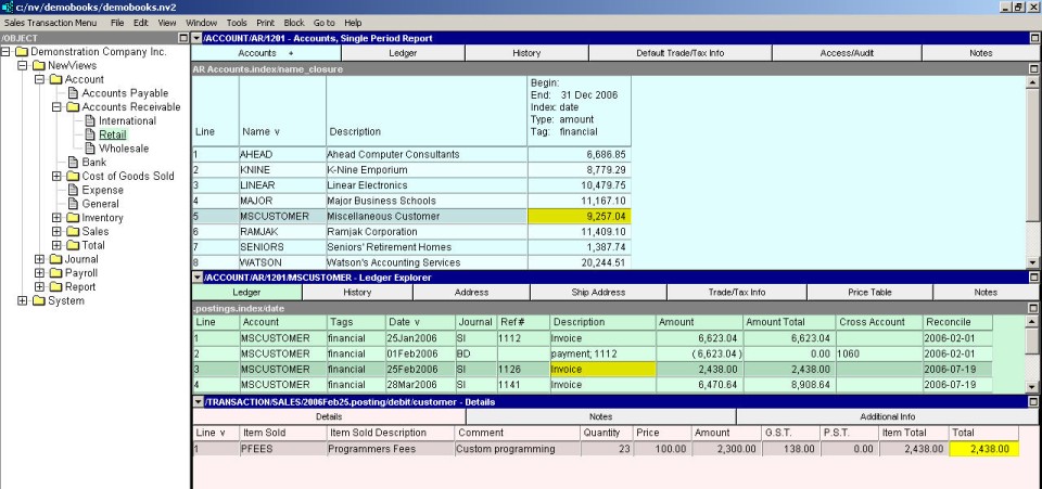 Click accounts receivable accounts (NewViews/Account/Accounts Receivable) in the NV2 Database Explorer.