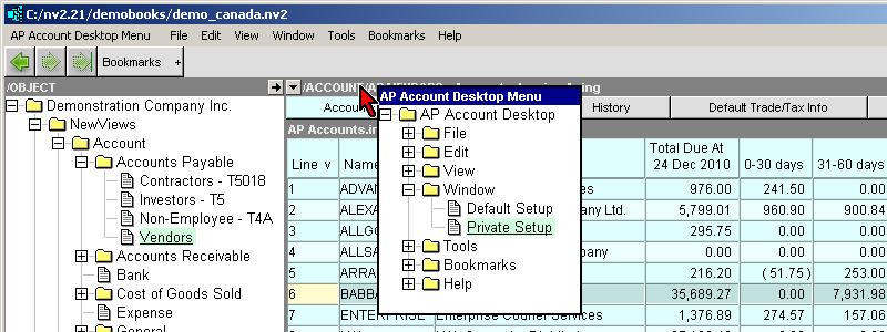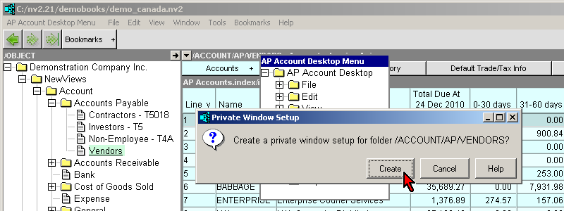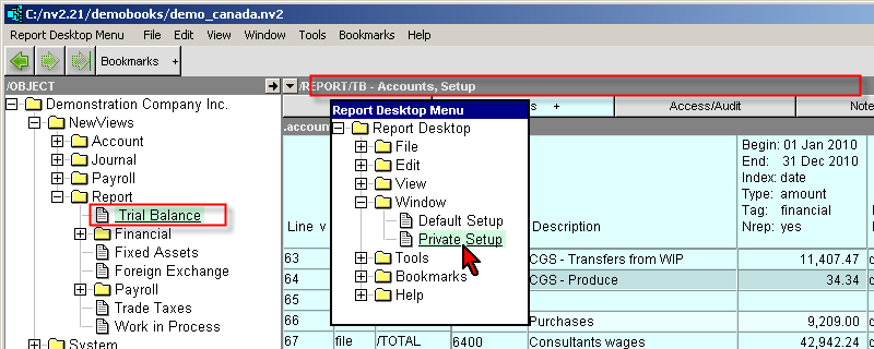 However, there are times when you want customized views, column setups and titles, etc. (This requirement is common when exploring reports). The private window setup command will create a set of windows that will only be used by the folder you execute it on.