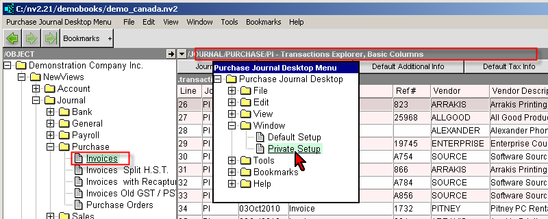 Private Desktops can provide you with the ability to have private pick roots and private views. For example, you constantly switch back and forth between a simple cash Sales journal (no quantities or backorders) and a Sales journal with all columns.