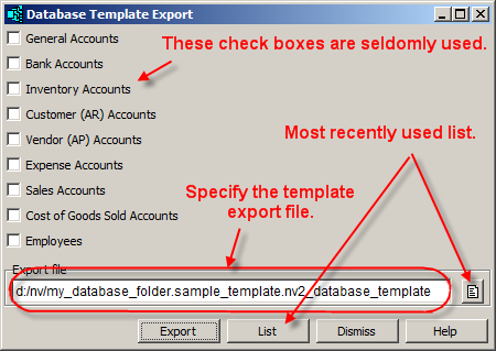 The data will be exported to the file you specify. We refer to it as a database template file. The file must have the extension .nv2_database_template and this extension will be added automatically if you omit it.