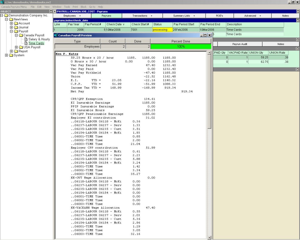 NV2 payroll allows you to have a "Payrun" that includes timecards for one or more employees. Hours for an employee's earnings account that are part of a timecard may not be edited on the paylist screen, however, the hours for an earnings account that does not have any amounts associated with a timecard may be edited.