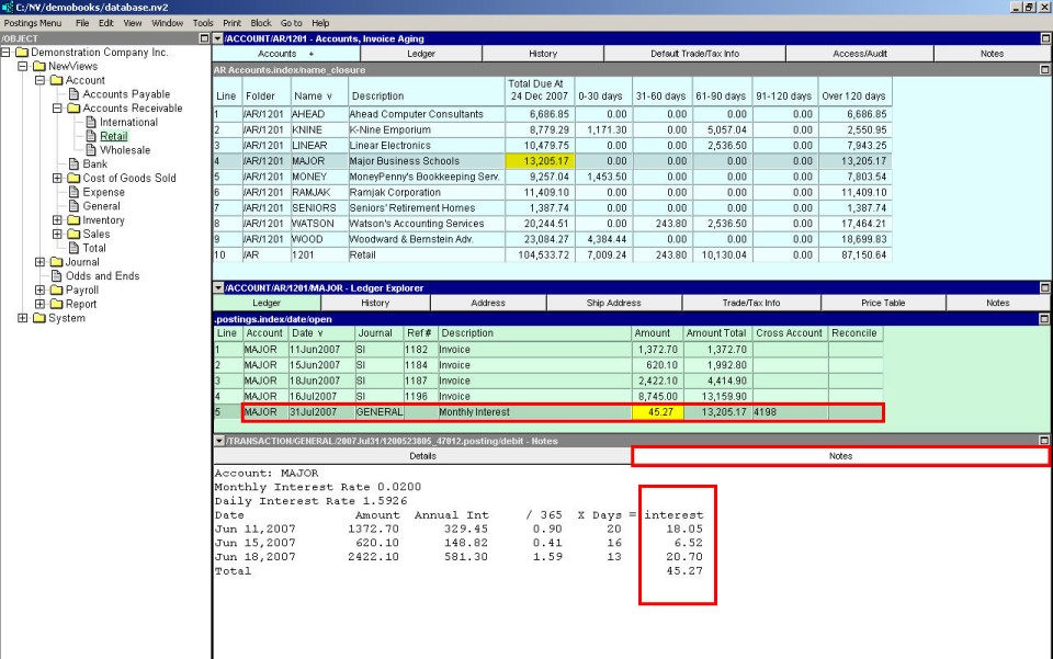 A common Accounts Receivable task is to charge interest on one or more overdue accounts (i.e. accounts with open and unpaid items).