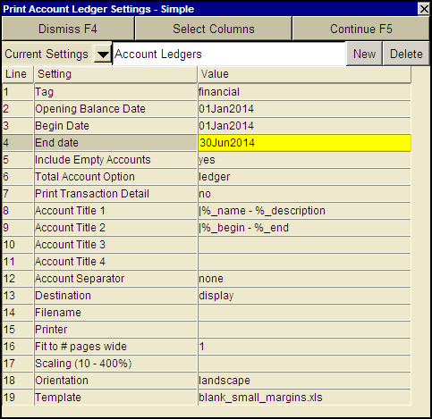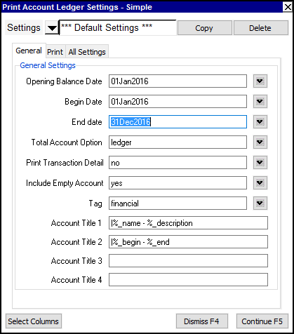 Shown below is the simple Print Account Ledger prompt.