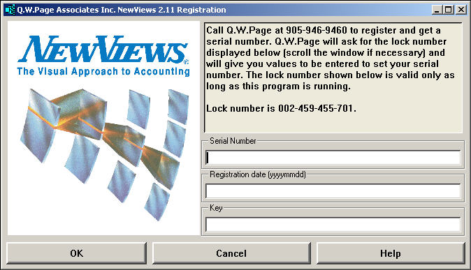 The displayed lock number is only valid at the time the registration program is executed from the NewViews 2.0 menu. If you click Cancel the lock number that had appeared becomes meaningless when the registration program is execute as a new lock number will be displayed.