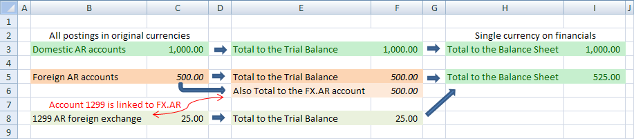 This is accomplished by adding a short list of accounts, a foreign exchange report and periodic journal entries.