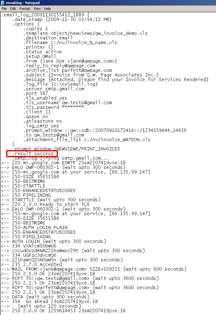 If Email Setup Log SMTP is set to "yes", the entire SMTP chit-chat is recorded (for debugging).