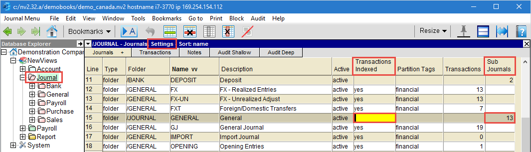 Position on a table of journals (brown). There are three types of journals: General, Purchase and Sales. Included in the General type are the Bank, General and Payroll journals.