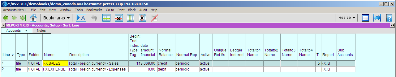 Below is a screen shot of the account links, as used in the demo books installed by NewViews.