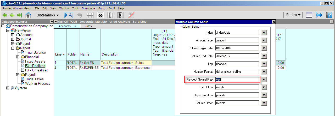Below is a sample Multiple Period Analysis report that needs to be setup. This report will display foreign currency values. It is used periodically by Tools>Foreign Currency to get the total values to be converted to the domestic currency.