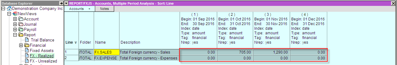 Two reports, two rate tables and two journals are provided to comply with ASC 830 in the demonstration books.