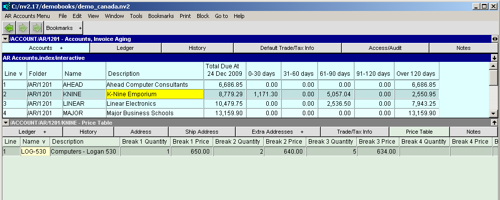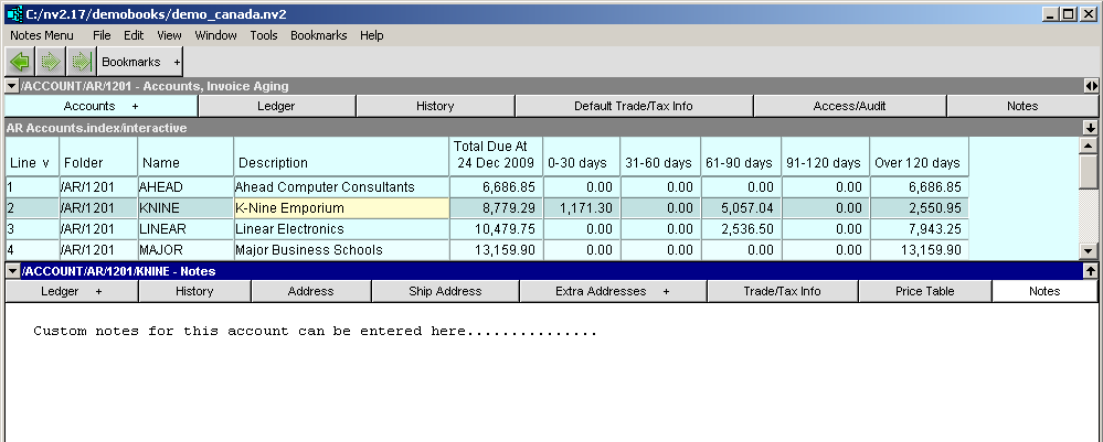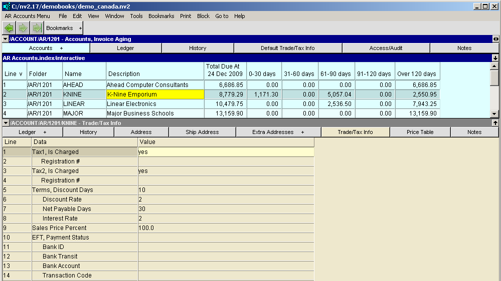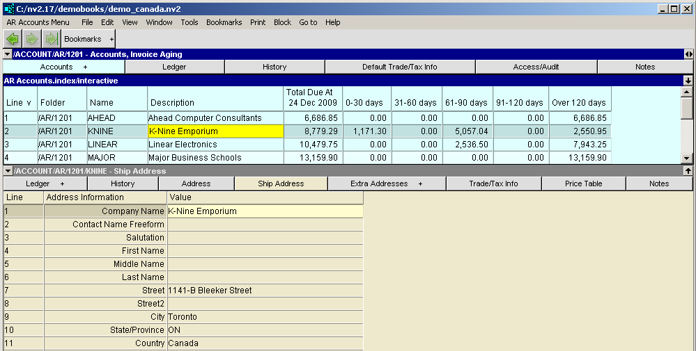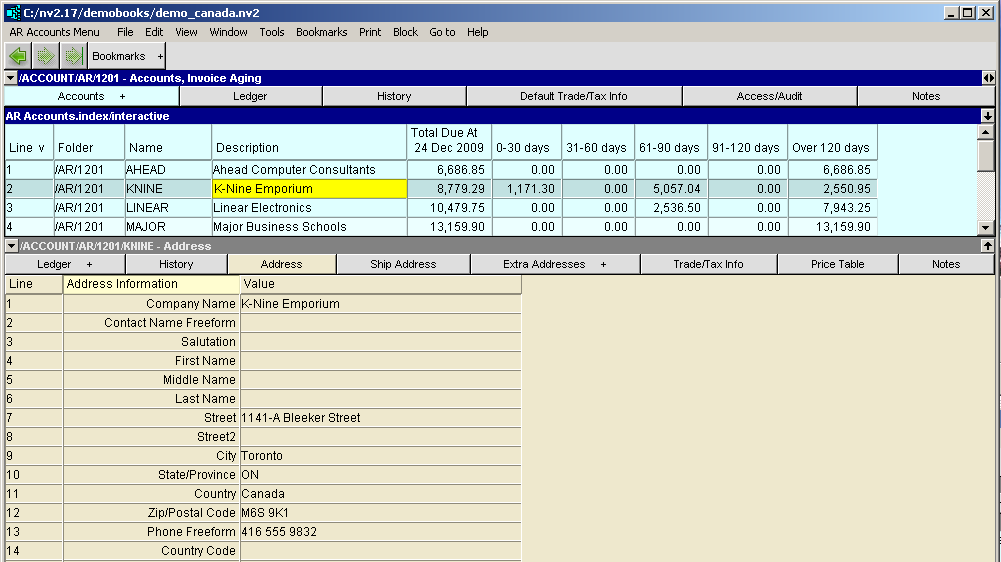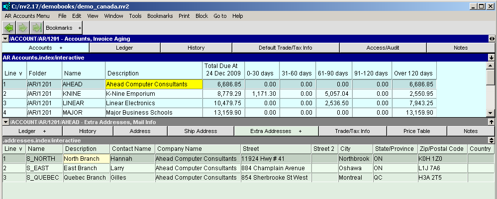 All account have additional information. Some accounts types have address tables as shown below on an AR account.