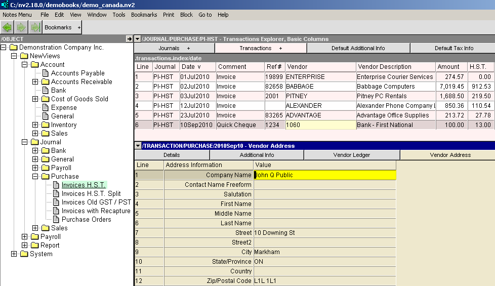 While still in the details area, click on the vendor address tab.