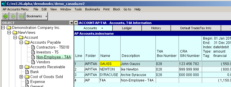 Print>T4As will take the amount to print from the leftmost amount column. The T4A Information view is initially configured with three columns: financial debits, financial credits, and financial balance. Payments to vendors are debits (reducing the vendor balance) and display negative. Print T4As will use the absolute value for comparison to the "Minimum Amount", and for printing. The financial credits and financial balance columns are just there for a visual "sanity check", and can be deleted.