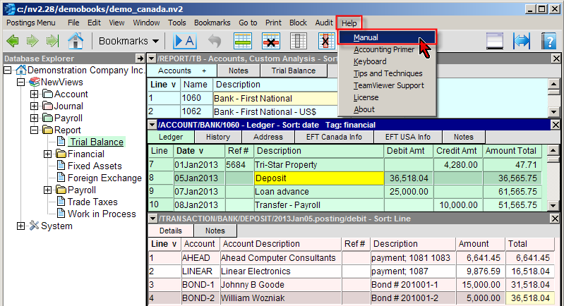 In NewViews, you can always obtain on-screen help in any of three ways: