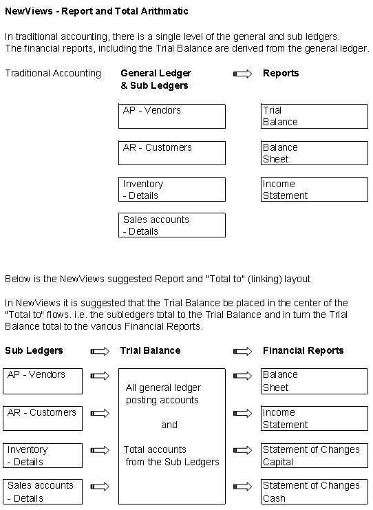 In a set of books based on a Starter Template, the report arithmetic has already been set up for you. If you change that names of any accounts to meet your own naming conventions, NewViews will change these account names wherever they appear in the books, including in the Totalto columns on reports. In this way, the integrity of the report arithmetic will be preserved.
